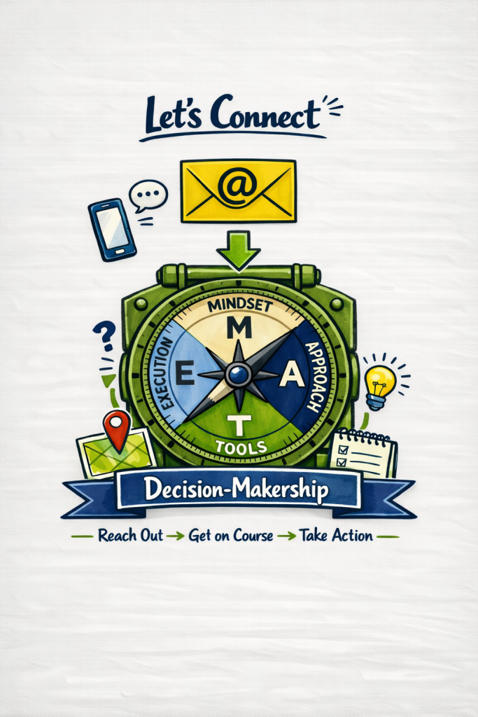 Each engagement uses the Decision‑Makership™ framework to bring structure, clarity, and decisive execution to the problems that matter most. In turn, individuals and teams walk away with practical tools they can use immediately.